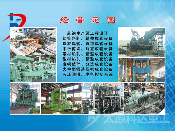 自公司成立以來已取得了多項工程設計業績。河北滄州力通聯無縫鋼管有限公司φ219無縫鋼管工程工廠設計;力通聯無縫鋼管有限公司φ273熱處理線工廠設計及設備設計供貨;江蘇常寶普萊森φ140無縫鋼管工程工廠設計及設備設計供貨;江蘇常寶150三輥穿孔機、12機架微張力減徑機、高精度十輥矯直機、鍋爐管精整區域自動生產線、AVS打頭機、雙線三線五線系列自動冷拔機等工藝成套設計供貨;磐石鋼管有限責任公司90熱軋生產線工廠設計供貨等。
